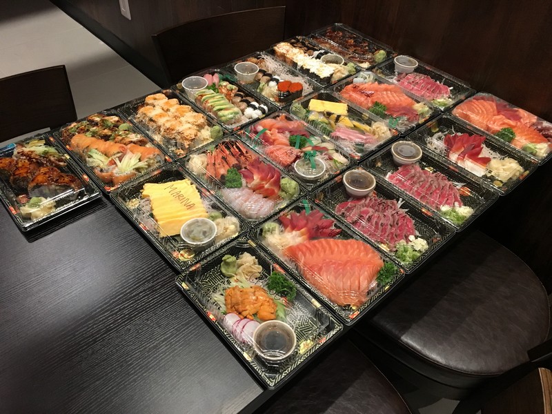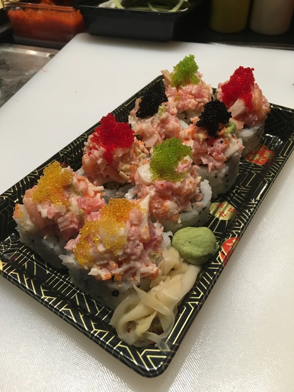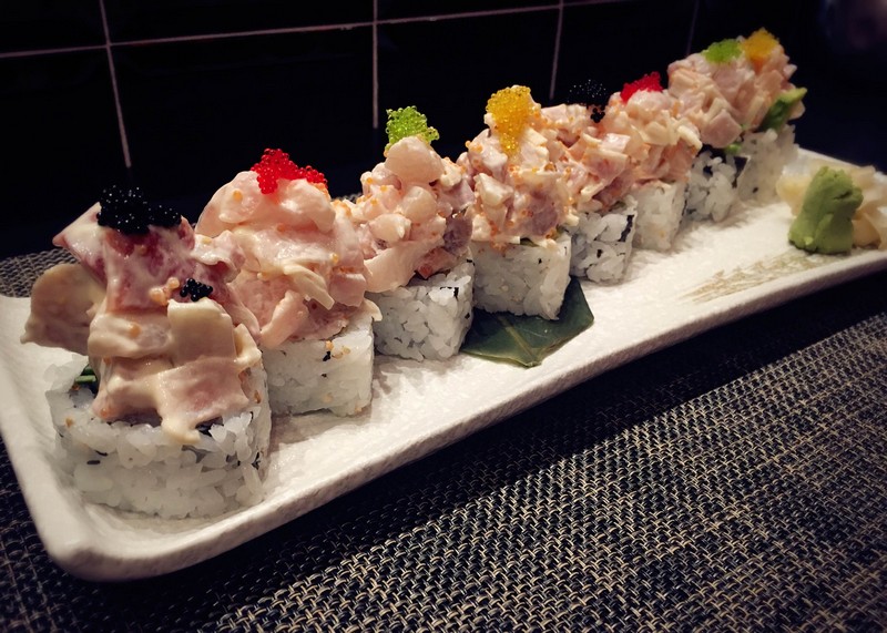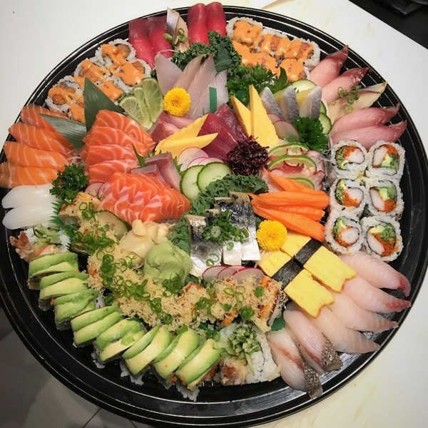 20pcs sashimi, 15pcs nigiri sushi, 10pcs Red dragon roll, 8pcs spider roll, 30pcs make roll(83pcs)