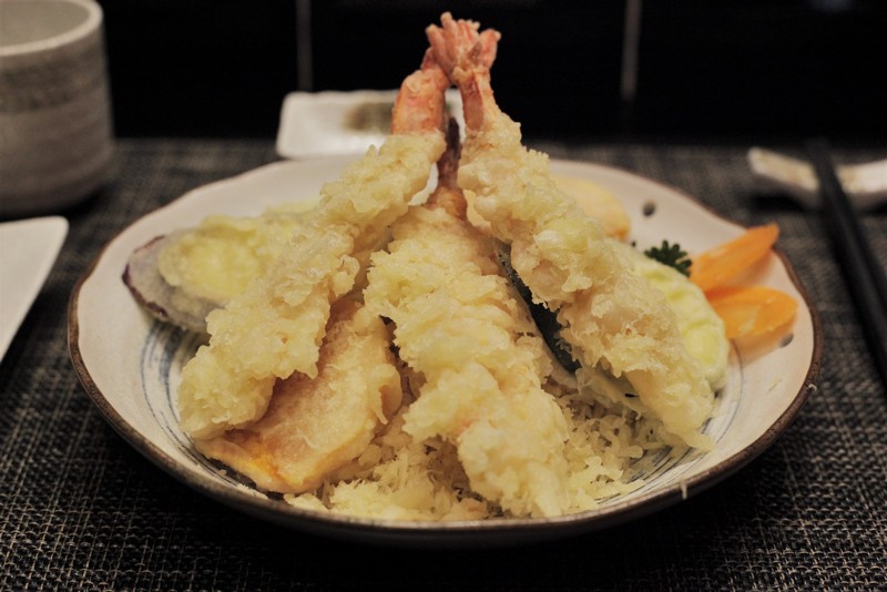 5 pieces of deep fried shrimp and 8 pieces of deep fried vegetables