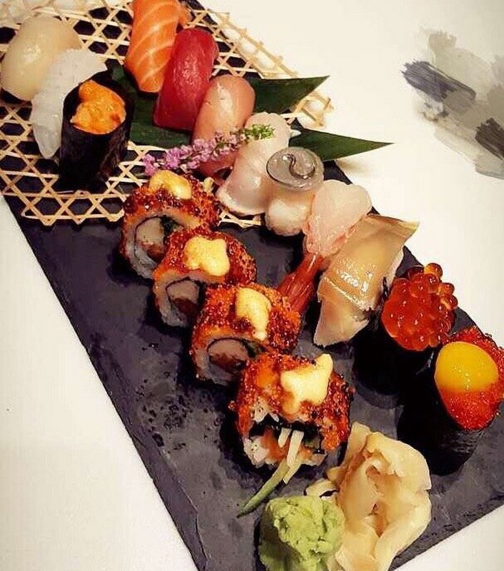 8pcs sashimi, 8pcs nigiri sushi,10pcs dynamic roll, 6pcs Maki roll (32pc)