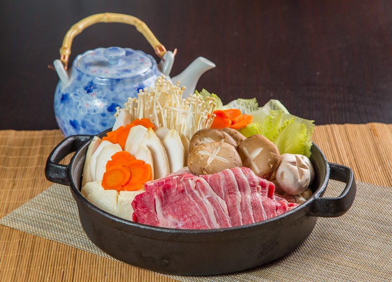 Sliced beef, tofu, assorted vegetable, 2 eggs and 2 bowls of rice